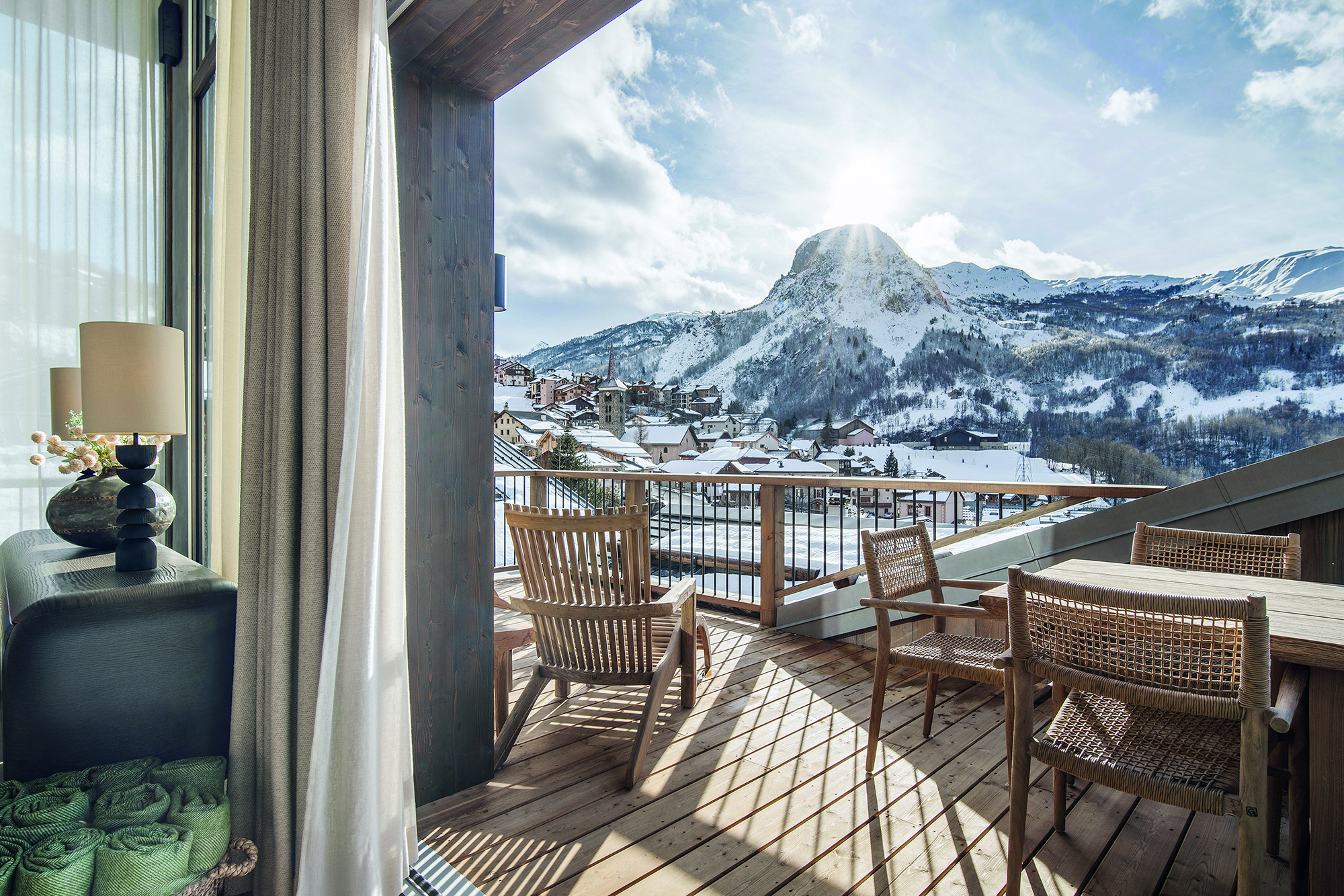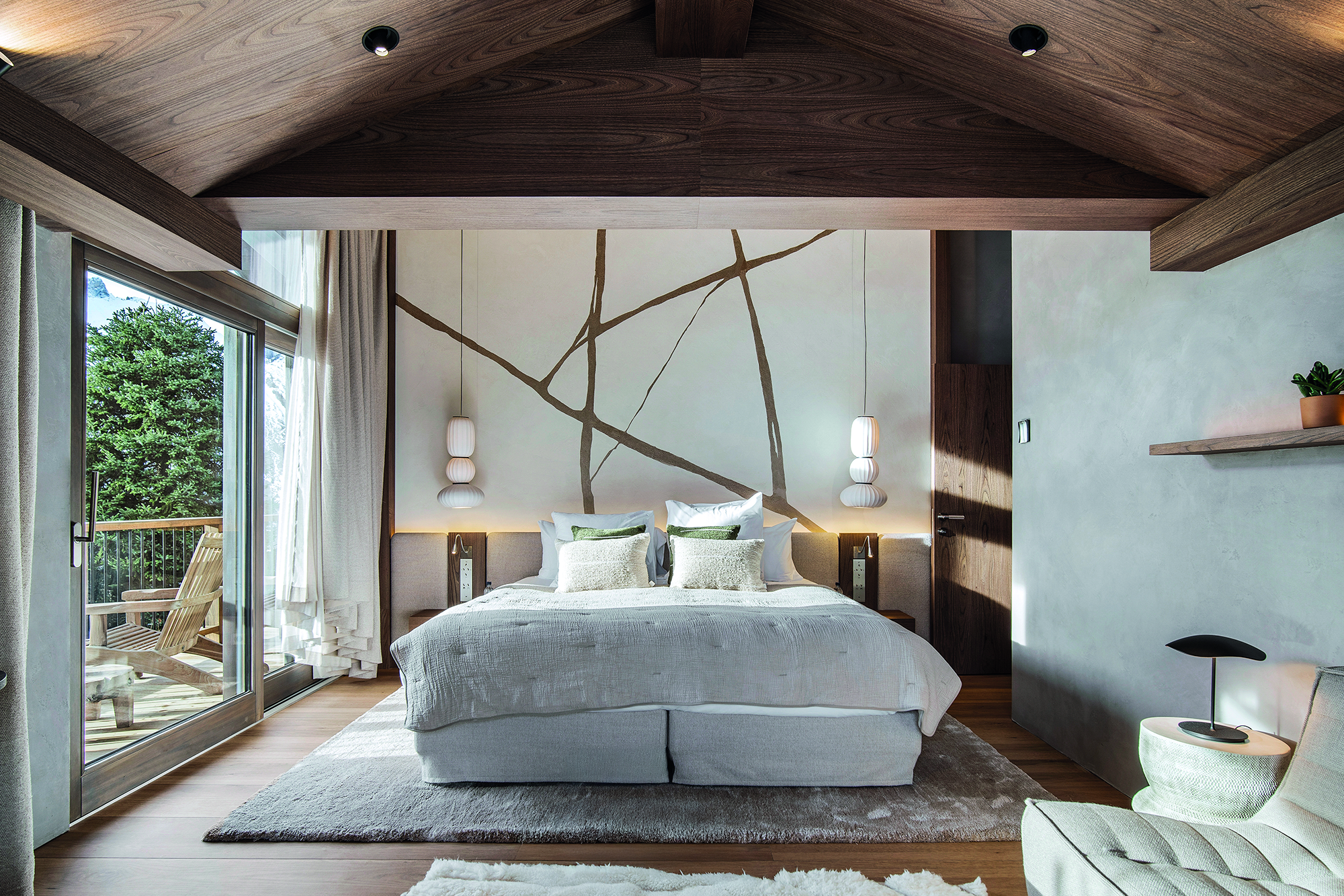 L’atout majeur du chalet ? Une immense pièce de vie, baignée de lumière où la cheminée, les salons, la cuisine ouverte s’organisent autour d’un luminaire pensé comme une cascade de glaçons. Elle se prolonge sur la terrasse avec une vue sur le village, l’église de Saint-Martin et son clocher emblématique. Le chalet de 650 m² s’étend sur 5 niveaux, reliés par un ascenseur. Dès l’entrée supérieure, un salon mezzanine dévoile une vue imprenable sur les montagnes. L’escalier central, véritable colonne vertébrale du projet, mène à la grande pièce de vie. Un étage entier accueille quatre suites et un dortoir tandis que l’étage détente réunit piscine, salle de cinéma, sauna, hammam et bar lounge. En sous-sols, la salle de sports, le ski room et la chambre du personnel complètent ce refuge d’exception. Sélectionné pour concourir au World Ski Awards™, le chalet Escapade pourrait devenir l’un des plus beaux chalets au monde, selon le vote du public dévoilé en octobre. Avec ses volumes plus que généreux, son design sur mesure et sa vue à couper le souffle, le chalet Escapade est prêt à séduire les esthètes du monde entier.