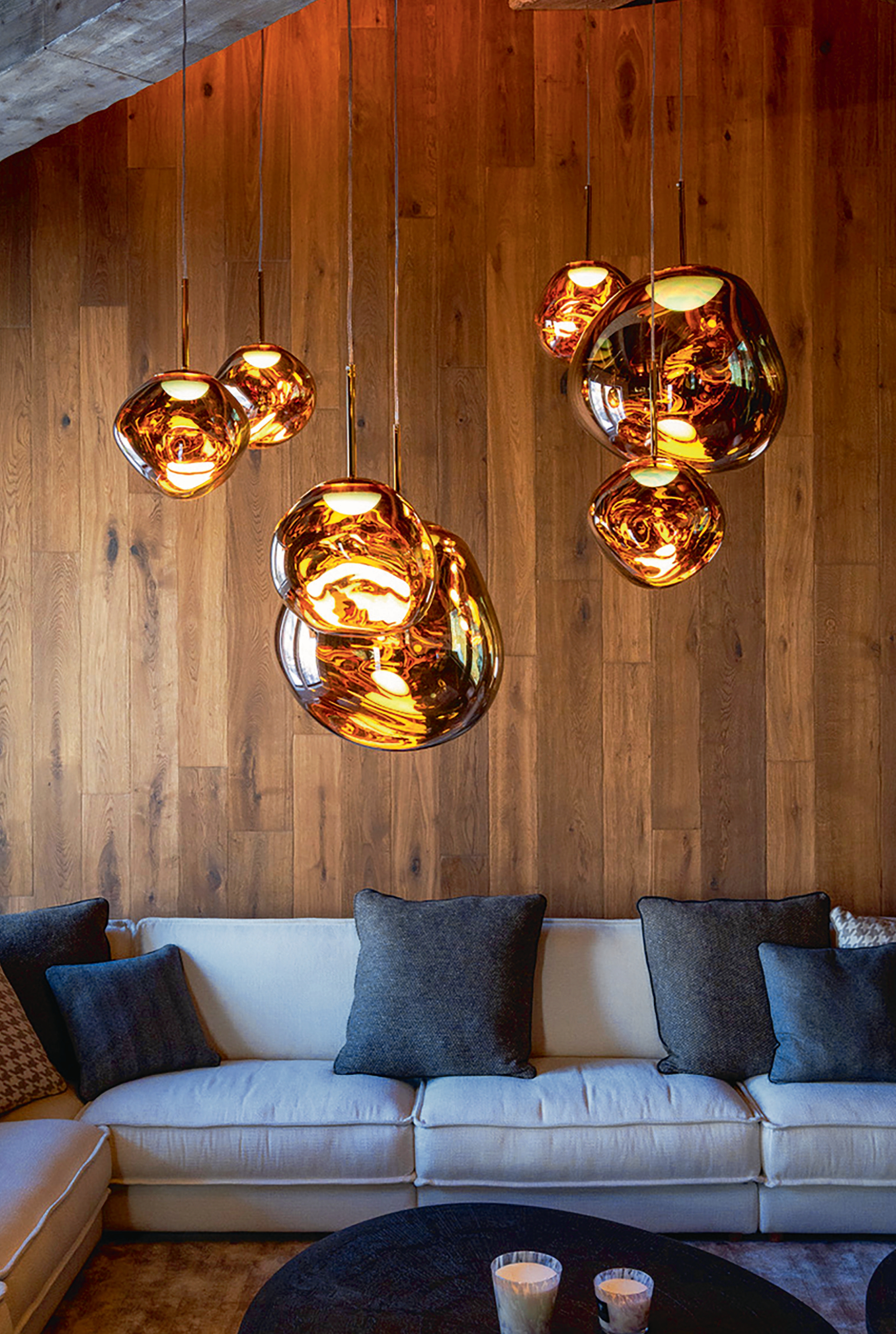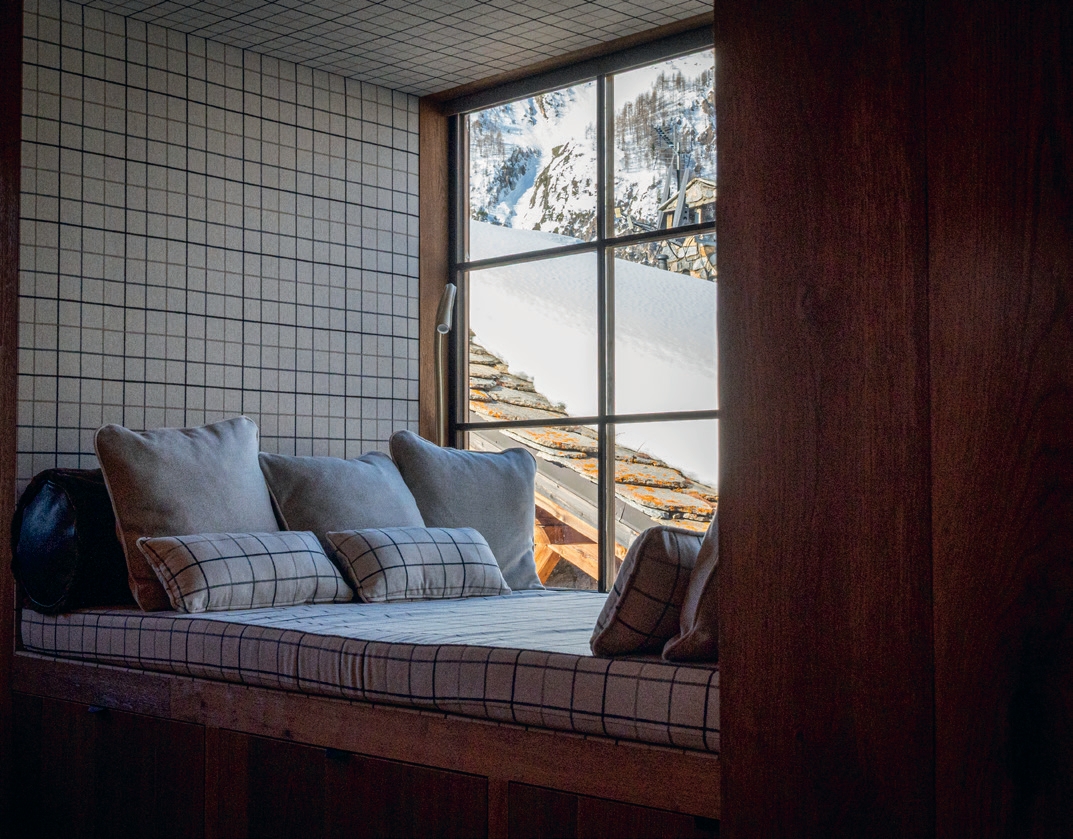Niché au cœur des Alpes, ce chalet imaginé par JMV incarne une vision intime et sophistiquée de l’univers montagnard. Conçu comme un véritable refuge, il mêle authenticité brute et raffinement discret, pour offrir une expérience sensorielle rare et profondément enracinée dans son environnement. À l’intérieur, le bois massif règne en maître : lames de chêne surdimensionnées, madriers ajourés façon claustra, charpente apparente aux nuances grisées... Des matières vivantes qui dialoguent avec le béton brut et la pierre taillée, dans un subtil jeu de textures et de contrastes. Les chambres dévoilent des têtes de lit mêlant tissu surpiqué et boiseries sous rampant, tandis que les salles de bains se parent d’un grès cérame effet marbre, sublimé par des vasques sculpturales et une robinetterie italienne aux finitions précieuses, tel le Red Sunstone. Le spa, aux allures de sanctuaire, invite à la sérénité dans une ambiance épurée et contemplative. Mention spéciale pour le salon cathédrale, où le feu s’admire au travers d’un insert vitré triangulaire, mis en valeur par des bibliothèques rétroéclairées et un mobilier réalisé sur mesure. Chaque pièce est pensée comme une alcôve intime, où artisanat traditionnel et technologies discrètes cohabitent avec élégance : domotique intégrée, éclairages architecturaux, objets connectés invisibles à l’œil nu. Ici, le luxe ne se crie pas, il se ressent dans la précision du geste, la noblesse des matériaux, et l’harmonie avec les sommets environnants. Ce chalet n’est pas simplement un lieu à habiter. C’est une œuvre d’architecture sensible, où chaque détail raconte l’histoire d’un art de vivre alpin, chaleureux et intemporel.