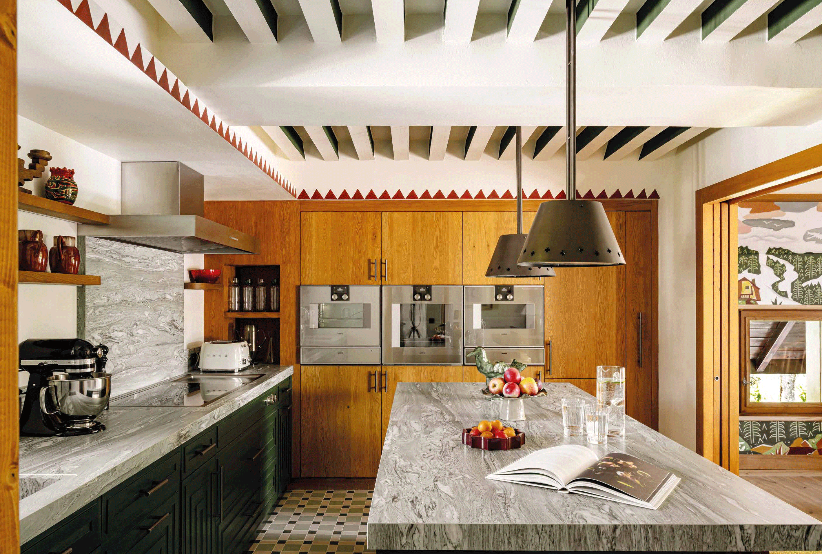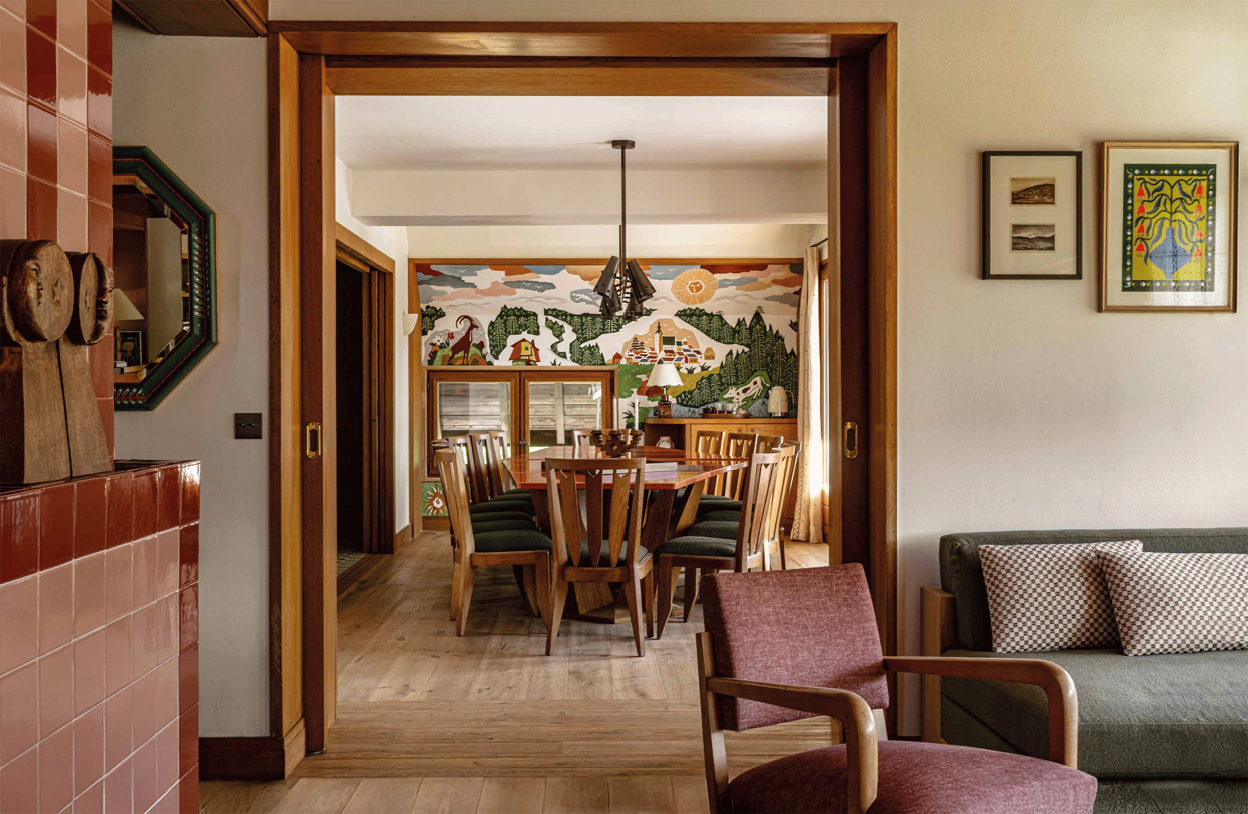 De leur première visite, Laure Gravier et Soizic Fougeront, co-fondatrices de l’agence d’architecture intérieure Claves, se souviennent avoir été impressionnées par l’ampleur du lieu. Elles passent des heures aux archives départementales d’Annecy, s’imprègnent des plans, des photos d’origine, des dessins géométriques et des croquis. Il fallait avant tout comprendre la démarche de l’architecte Henry Jacques Le Même* (1897-1997), qui allait jusqu’à concevoir l’aménagement intérieur, avec un goût prononcé pour l’ornementation des murs et des sols. « Nous avons essayé de poursuivre sa démarche. Son travail était à la croisée de plusieurs mouvements, avec un héritage Art déco fort, mais aussi une influence moderniste, plus épurée », raconte Soizic Fougeront. (*) Henry Jacques Le Même a inventé « le chalet du skieur » dans les années 20 à la demande de la baronne de Rothschild. Il a conçu plus de 900 projets en France, dont plus de 200 chalets.