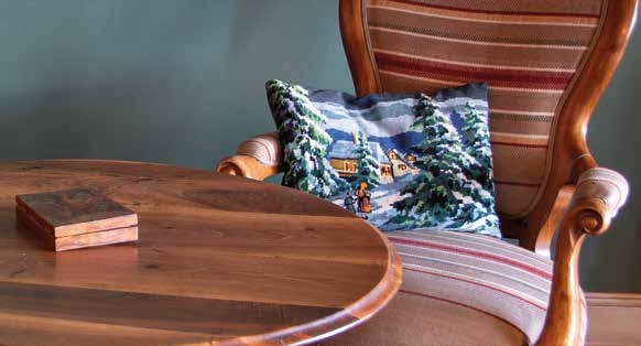 Dans le kitsch il y a de l'humour. L'idée, quand on a le bonheur de posséder des meubles de montagne anciens, c'est de les disposer sans tomber dans le musée d'art populaire. C'est là qu'une pointe de kitsch donne un twist réjouissant à un décor alpestre classique. Comme ces coussins brodés au point de croix. Les canevas brodés au point de croix étaient vraiment les mal-aimés des brocantes et vide-greniers il y a encore une dizaine d'années, jusqu'à ce qu’on ait l'idée de les sortir de leur cadre et de réintroduire dans le décor ces chevreuils au soleil couchant dans la forêt et autres clichés alpestres auréolés de neige. © Bella-Tola