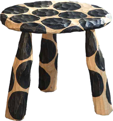 Dans cet atelier, Ferréol invite les participants à réutiliser les matériaux de l’atelier pour créer, dans un délai d’une semaine, autant de tabourets qu’il leur sera possible. Ces tabourets sont réalisés avec une économie de moyens, les participants étant encouragés à travailler avec l’objectif de « faire plus avec moins », en explorant les limites de ce qui est possible et de ce qui ne l’est pas. Tabourets uniques sculptés en chêne, aux formes et finitions variées. Collection en cours. 100 stools, par Ferréol Babin, Domaine de Boisbuchet.