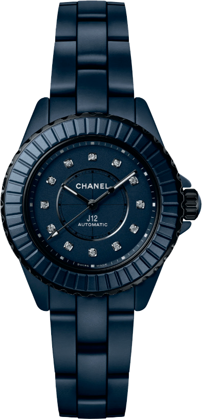 Icône de l’horlogerie, la J12 de Chanel se pare d’un boîtier en céramique bleu mat et acier, rehaussé d’un revêtement noir. Sa lunette et sa bague en céramique bleue, ainsi que son cadran serti de 123 saphirs, apportent une touche de douceur et d’éclat. Un mouvement automatique pour une élégance intemporelle.