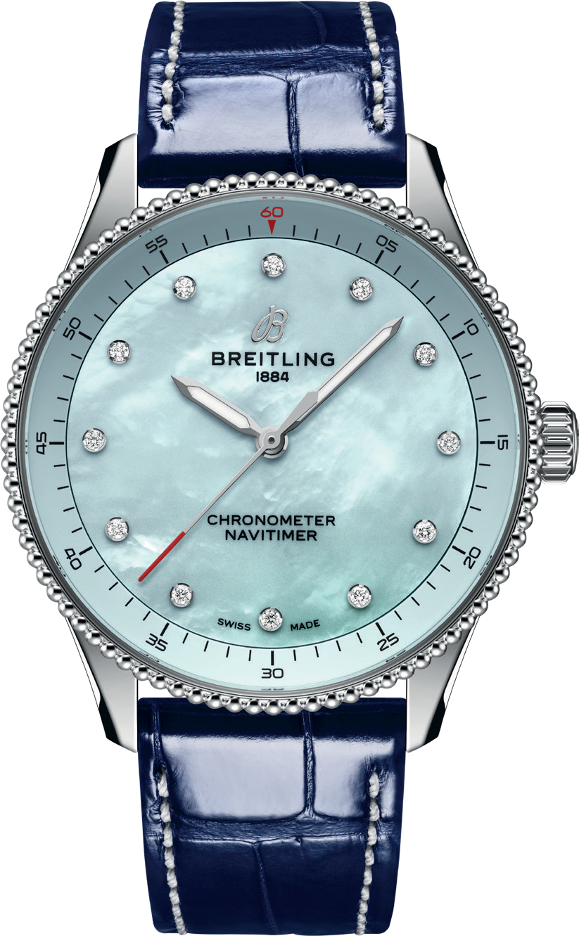 Icône intemporelle de Breitling, la Navitimer se décline dans un élégant format de 32 mm, spécialement conçu pour les femmes. Adieu la règle à calcul emblématique, place à un cadran épuré, sublimé par des touches de pastel, de nacre et de matériaux précieux. Ce garde-temps, véritable bijou de poignet, allie sophistication et féminité avec grâce.