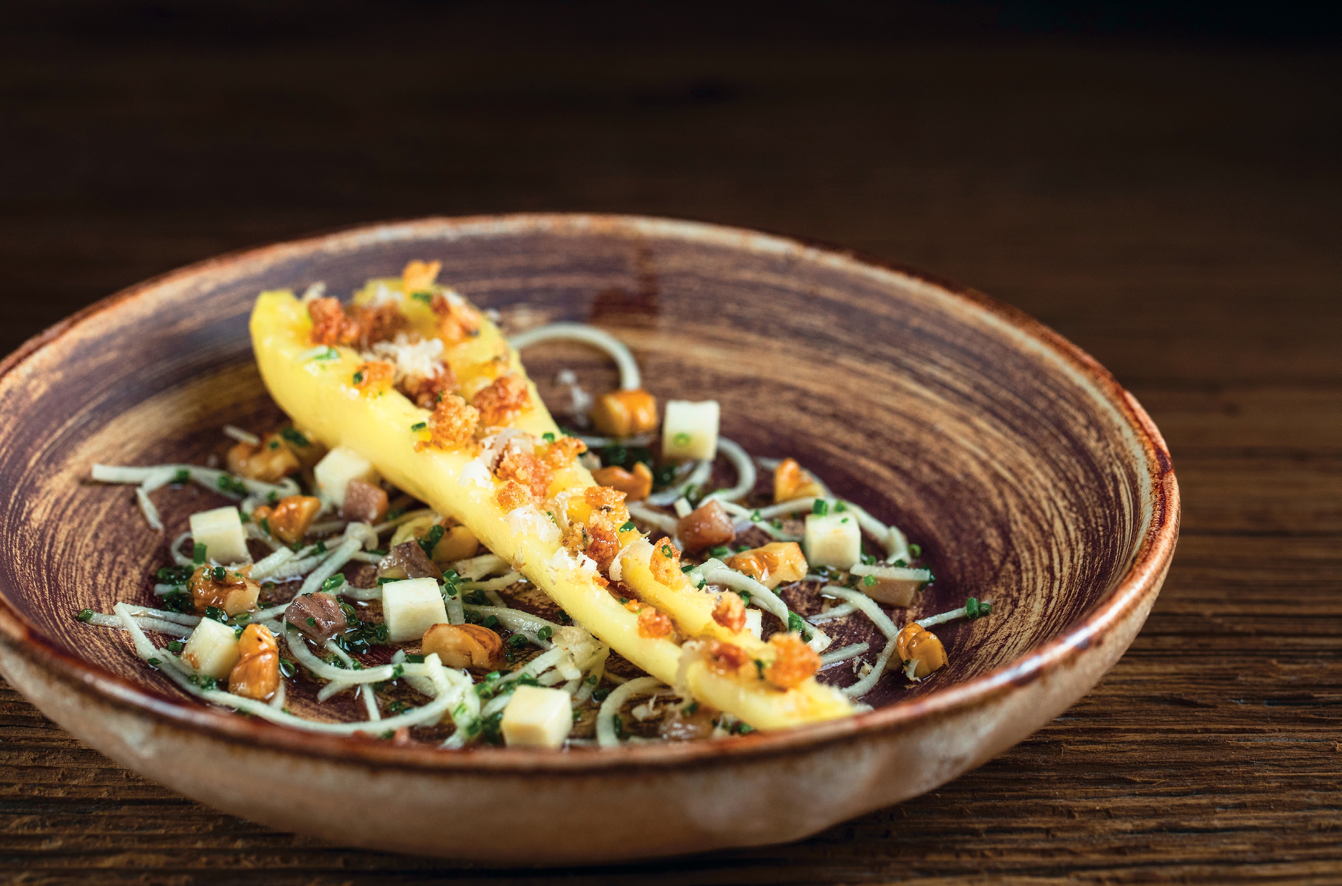 Panais confit, nuance d’estragon, sucs d’épluchure.