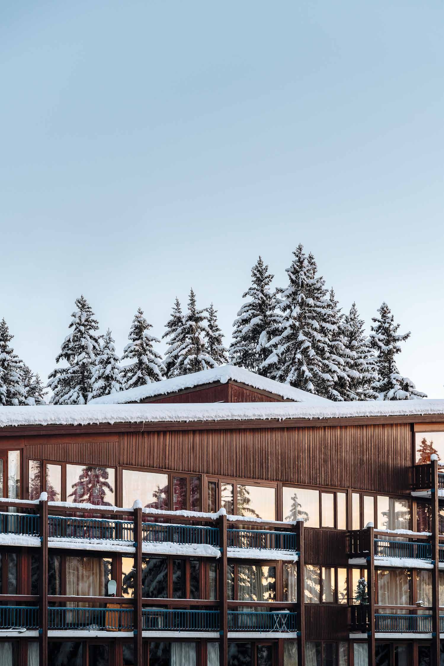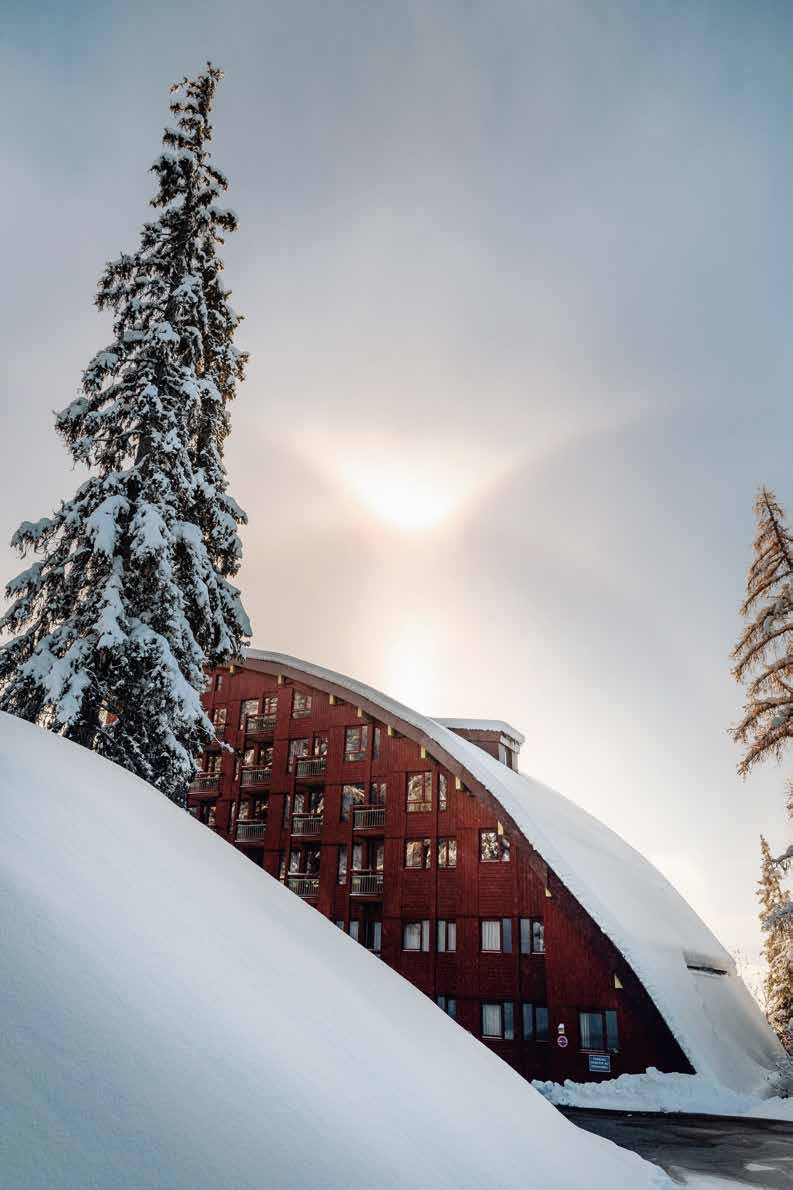 Implantés dans la pente et pensés sans voitures, les bâtiments s’effacent pour laisser la nature respirer, comme voulu par les concepteurs de la station.