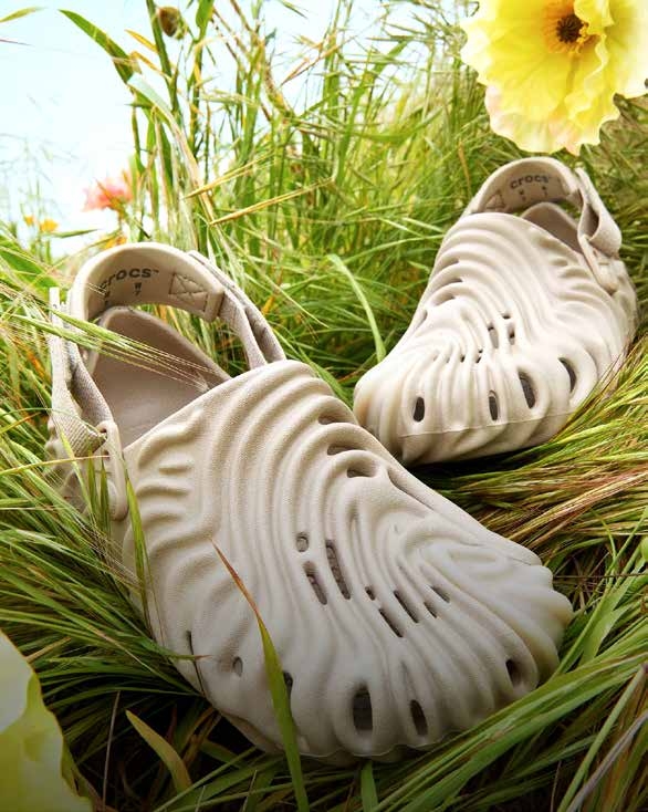 Inutile de vous représenter CROCS, la drôle de marque américaine née en 2002 et devenue depuis un phénomène mondial. Malgré un design discutable pour certains… elle a conquis le grand public, les professionnels de la santé, la culture pop, et même… la NBA, devenant un symbole de confort fonctionnel et de non-conformisme. La Bembury que nous présentons ici est le fruit d'une collaboration prestigieuse avec le designer Salehe Bembury, connu pour son travail chez Yeezy et Versace. Avec cette édition limitée, Bembury revisite le modèle Classic Clog, lui donnant une silhouette plus sculpturale, organique et dynamique. Les évents emblématiques sont remodelés en motifs courbes évoquant des empreintes digitales ou les sentiers de randonnée du Haut-Chablais. Cette collaboration a légitimé Crocs dans le monde de la mode haut de gamme. Elle démontre que la fonction peut rencontrer le design d'auteur, ajoutant une valeur esthétique et collector à la chaussure utilitaire de base. Et pour aller encore plus loin, elle est souvent proposée avec des Jibbitz exclusifs (les autocollants décoratifs) et une finition bicolore. Son succès a établi un précédent pour des collaborations stylées de haut niveau. Crocs est l'icône du confort fonctionnel. Le modèle Bembury en est la version « haute-couture » : une réinterprétation intelligente et design qui a prouvé que l'utilité pouvait être sublimée en objet de désir mode, de Beverly Hills à Megève.