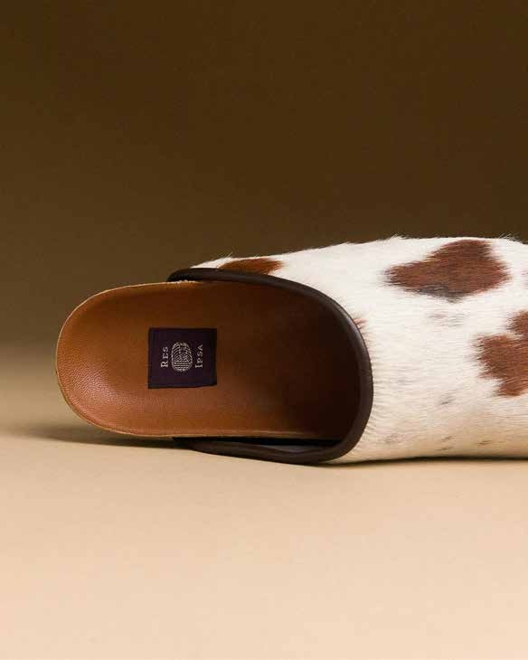RES IPSA (qui signifie « la chose parle d’elle-même » en latin) a été fondée en 2013 par deux avocats, Josh et Odini, insatisfaits par l’uniformité des accessoires professionnels. Leur aventure a commencé par la création de leurs propres cravates. Initialement centrée sur des accessoires en tissus luxueux, la marque a ensuite évolué vers une vision unique et durable. Inspirés par leurs voyages, ils créent désormais des pièces uniques à partir de matériaux vintage, recyclés et réutilisés, fabriquées à travers le monde. Dans leur atelier, ils tissent eux-mêmes leurs tissus, et uniquement en quantités nécessaires pour répondre à la demande et réduire les déchets. L’accent est résolument mis sur l’unicité, la qualité et l’histoire de chaque produit. Ces sabots Cowhide signature sont fabriqués artisanalement à Marrakech en cuir de vache recyclé de l’industrie agroalimentaire. Alliant confort naturel (semelle intérieure en liège moulée au pied) et durabilité (semelle en caoutchouc), leur design s’inspire des chaussures historiques des paysans européens du XIIIe-XIVe siècles et d’un voyage à Istanbul. Chaque paire est unique, avec une finition en cuir et une doublure en daim.