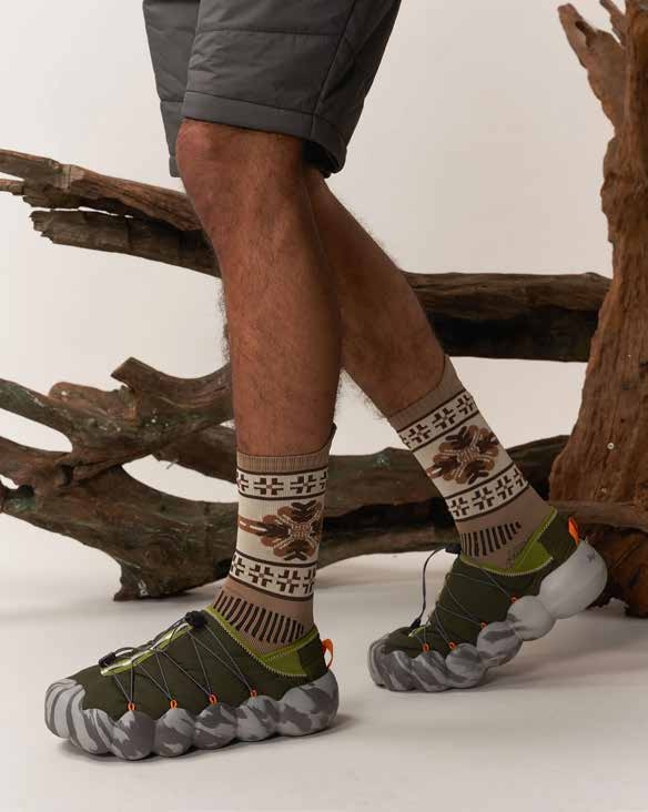Née en Suisse, Uppervoid s’impose comme l’une des marques les plus inspirantes du nouvel outdoor premium. Sa devise, « vIn Nature We Trust », résume une approche philosophique qui réconcilie design épuré, innovation et conscience environnementale. Conçu comme un compagnon de fin de journée en montagne, le Hover est un modèle ultraléger qui allie audace et haute technicité (mousse bio-basée super amortissante, semelle Ortholite, isolation Thermolite, traitement antibactérien pour les odeurs de pieds devant la télé, et semelle extérieure Octopus pour coller à la route mouillée par le génépi). Il s’utilise aussi bien après une randonnée que pour aller promener le chien.