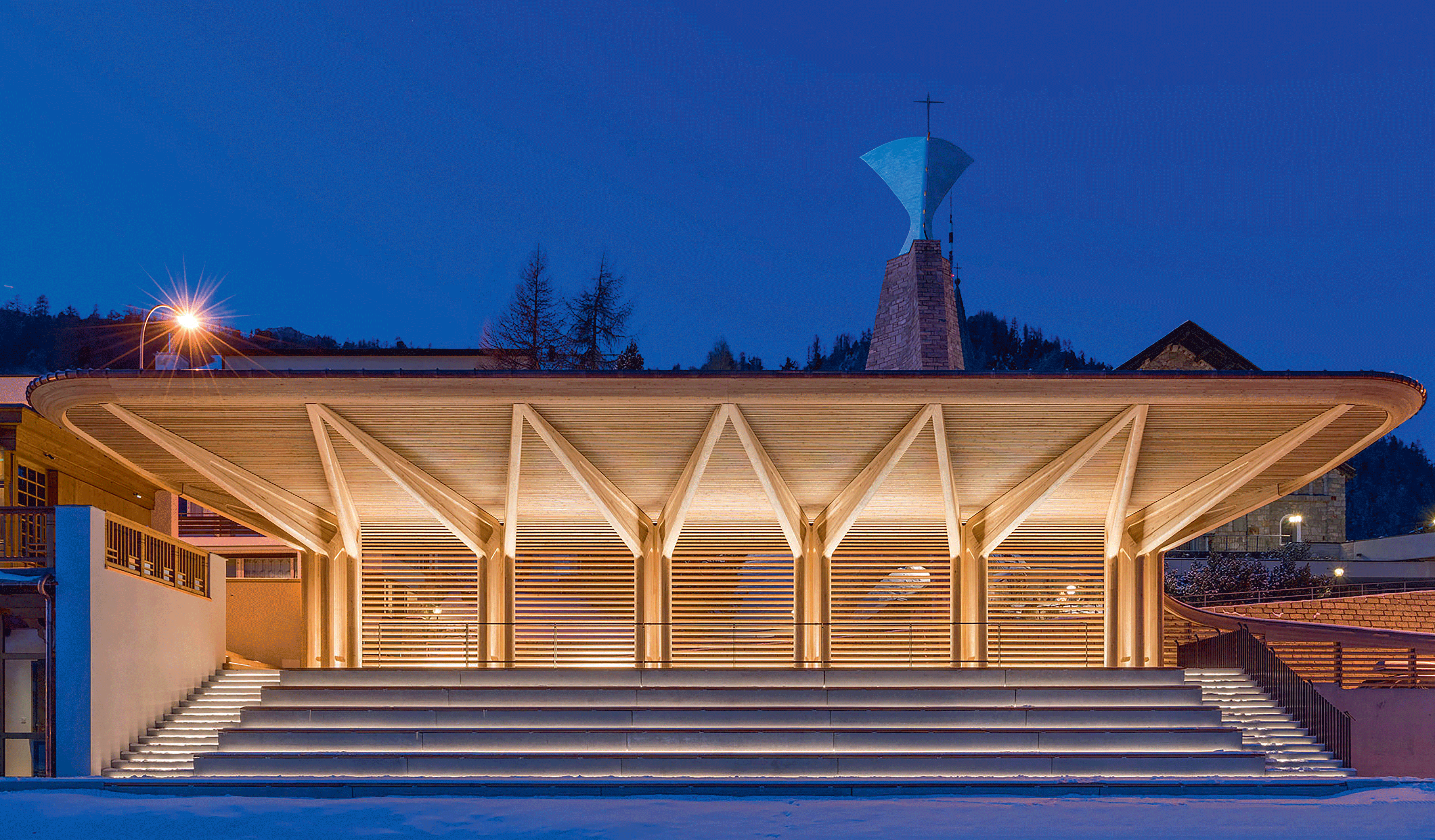Norman Foster a dessiné plusieurs bâtiments à Saint-Moritz, mais la Chesa Futura est sans doute son œuvre la plus emblématique. Ce bâtiment tire son inspiration d’une source pour le moins élégante : la Porsche 356 gris argenté de 1950 que l’architecte affectionne particulièrement. Immeuble privé, la Chesa Futura – qui signifie « maison du futur » en romanche, la langue ancestrale de la région des Grisons – se distingue par une forme audacieuse, à la fois fluide et organique. Elle évoque les courbes raffinées de la voiture vintage ainsi que les routes sinueuses des Alpes suisses que Norman Foster empruntait pour se rendre au ski. « La Chesa Futura est très vivante, à l’instar de la Porsche », déclara un jour le maître des lignes. Ce bâtiment incarne parfaitement l’esthétique singulière de l’architecte, mariant innovation et respect du contexte local. Sa structure en bois est recouverte de quelque 250 000 bardeaux de bois local, rappelant les chalets traditionnels de la région. Perchée à flanc de colline, elle offre une vue imprenable sur Saint-Moritz et les majestueux paysages alpins environnants. Un bijou d’architecture, intemporel, offert par un maître toujours au sommet de son art. Merci maestro.