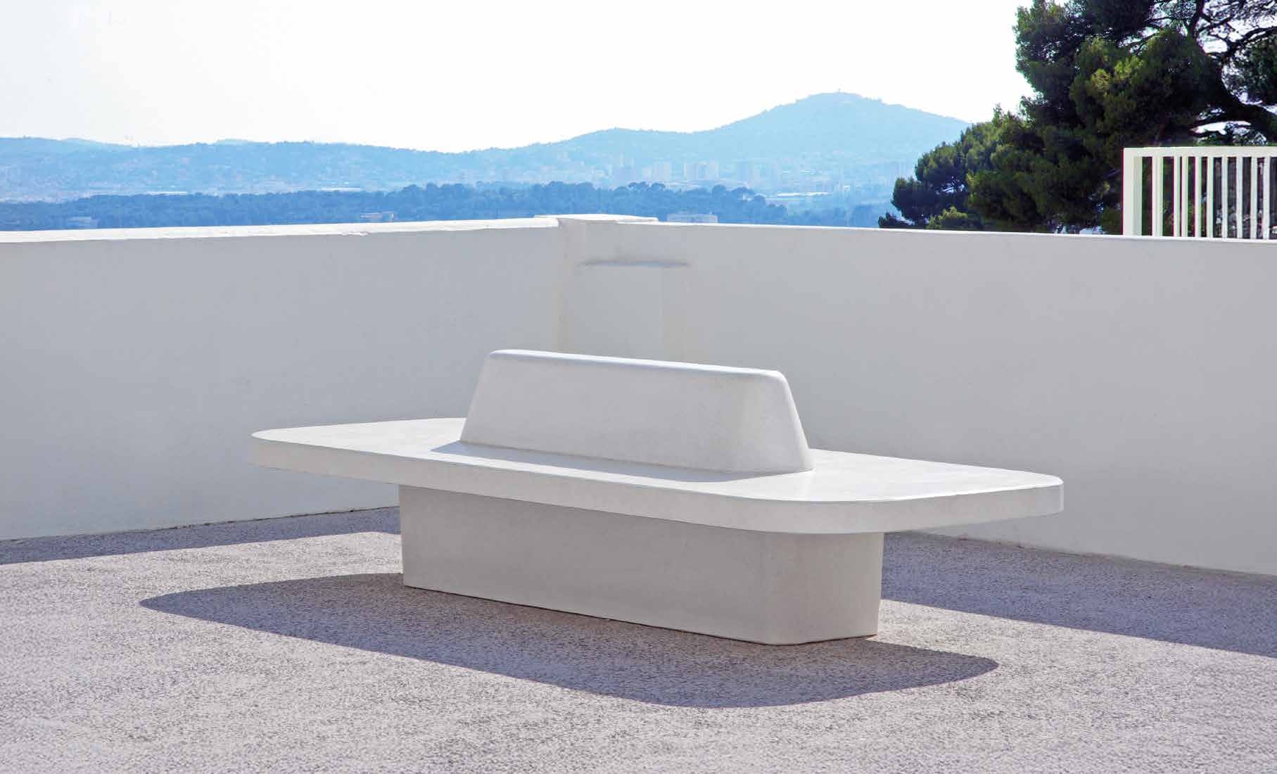 Banc en béton et carte du site imaginés par l'atelier Patrick Jouffret