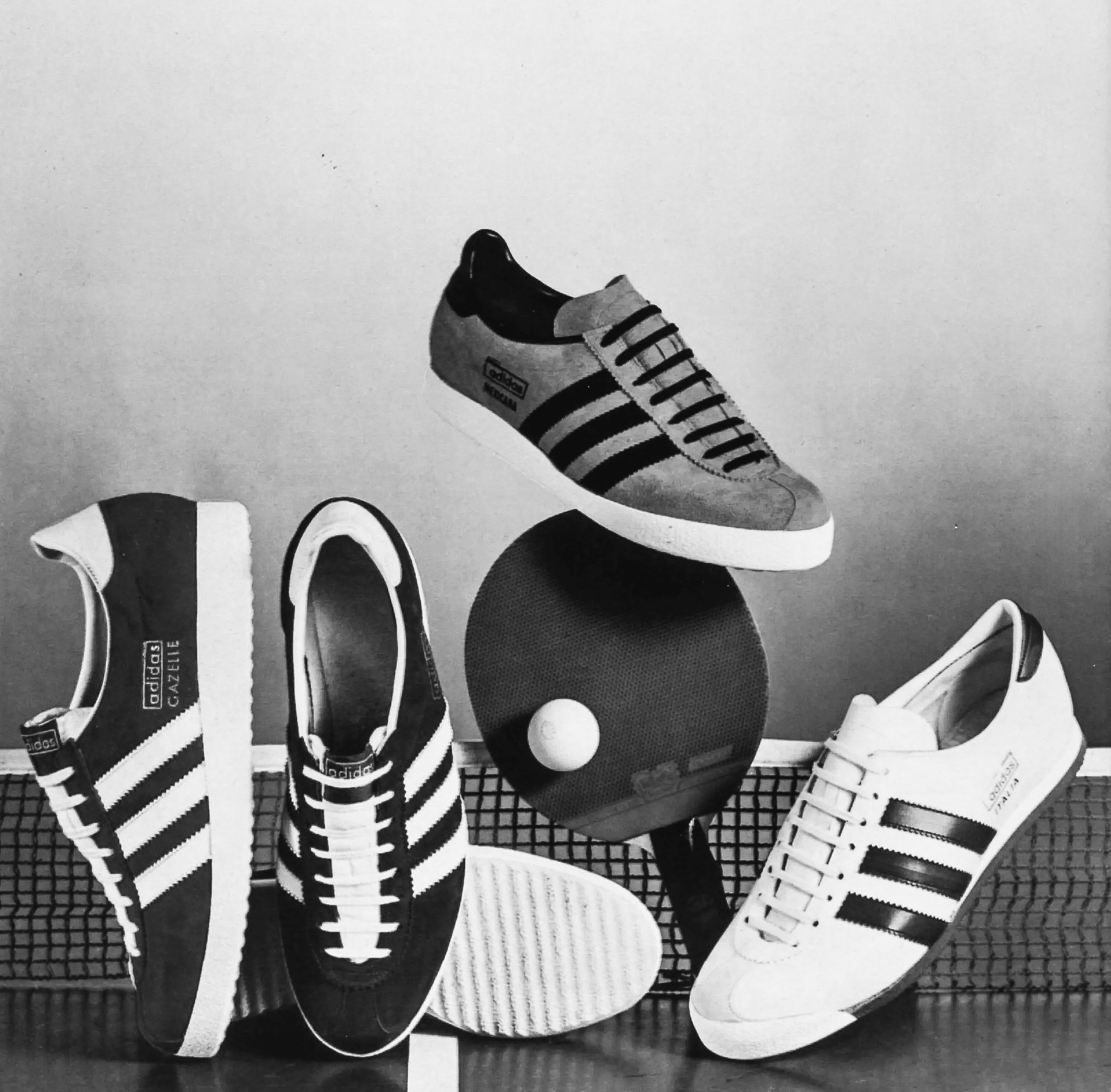 1966, la gazelle est la première Sneaker multisport de l’histoire. La bleue est alors destinée au sport en salle ; la rouge au sport extérieur, toutes deux pensées pour devenir un classique de la marque… Son destin est tout autre, elle devient une icône : aux Jeux Olympiques de Munich 1972, Marc Spitz gagne le 200 mètres nage libre et monte sur le podium les chaussures à la main, pour ne pas les mouiller selon les recommandations de la marque. Une précaution qui devient un énorme coup de pub… et déplait au Comité Olympique International qui voit ça comme un placement de produit. Conséquence ? La chaussure est bannie du catalogue durant 8 longues années. En 1980, retour au catalogue de la Gazelle avec la très bonne idée de proposer 8 couleurs. Échec et mat ! La chaussure fait son entrée dans le monde du hip hop, de la mode et dans la rue avec Mick D des Beastie Boys, Jamiroquai, le chanteur d’Oasis, et même Michael Jackson. David Beckham, Rihanna, et les mannequins, Olivia Palermo, Alexa Tschung et Gigi Hadid et bien évidemment Kate Moss, font une promotion mondiale de ce modèle emblématique. Le club de football de Liverpool adopte dans la foulée le modèle rouge, la couleur du club. L’histoire de la Gazelle est en marche et elle a encore de nombreuses années à courir.