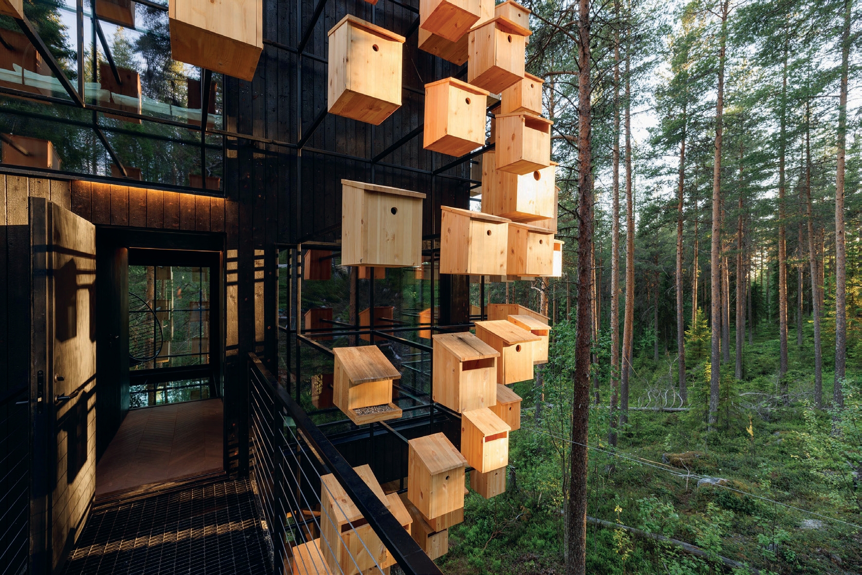 Conçu par BIG–Bjarke Ingels Group, le dernier ajout au Treehotel est entouré de 350 nichoirs.