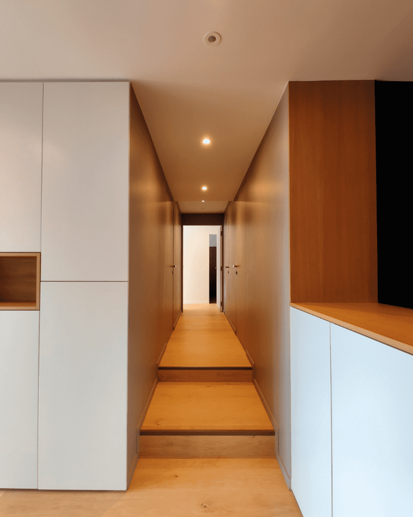 Du mobilier à l’esprit très japonisant : meubles encastrés aux lignes épurées et à la silhouette discrète, surfaces lisses et couleurs claires. Sûrement la rémanence du désir premier de Théo Martin d’être ébéniste, avant de se décider à intégrer l’ESAIL de Lyon et de compléter sa formation d’architecture intérieure par une formation d’architecte HMNOP à l’ENSAL de Lyon. Un cursus plus que complet hérité d’une passion depuis tout petit, Théo, Annécien, ayant grandi en Haute-Savoie dans une famille de bricoleurs. Et si l’agence est jeune, à l’instar de son fondateur, qui a tout juste 26 ans, les projets réalisés et à venir sont nombreux. Que ce soit des projets de rénovation pour des particuliers, en Rhône-Alpes, à Lyon notamment, et dans le bassin annécien (l’agence est basée à Annecy), mais aussi pour des entreprises comme ce garage automobile pour véhicules haut de gamme en Savoie dont l’agence va repenser le showroom et l’atelier. Des projets imaginés, comme la Villa T, en résonnance avec la philosophie de l’agence : Kanso, ou une esthétique ramenée à l’essentiel, où le mobilier se doit d’être ergonomique, le décor dépouillé d’artifices. Bref, une approche architecturale où la circulation, les volumes et le mobilier évoquent la simplicité – apparente seulement – et où la beauté se lit dans les détails.