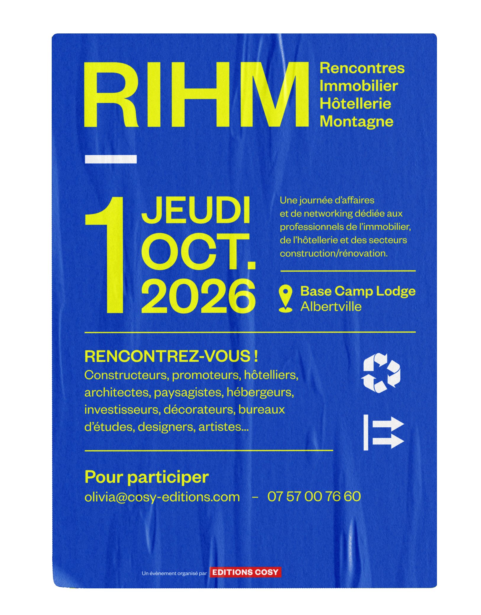 JEUDI 01 OCTOBRE 2026 BASE CAMP LODGE - ALBERTVILLE Programme de la journée : • Accueil des participants • Rendez-vous B2B one-to-one • Temps de networking • Cocktail de clôture Vous souhaitez être partenaire de l’évènement ? Contactez-nous ! Pour toute question/réservation : + 33 (0)7 57 00 76 60